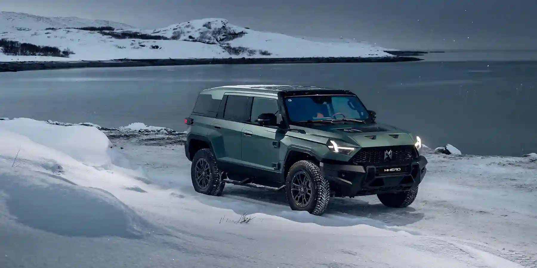 Вообще, объявление о том, что первый тест-драйв M-Hero пройдет именно здесь, да еще зимой, выглядело дерзко. Добраться сюда — это отдельная непростая задача, потому что взять перевал Муста-Тунтури способны далеко не все автомобили. Да и вообще, дороги здесь прокладывались военной техникой для военных нужд и, кажется, никогда не ремонтировались. Помножьте это на зимний холод, сбивающий с ног ветер и непролазный снег. И среди этого поистине русского «великолепия» — премиальный китайский электровнедорожник?